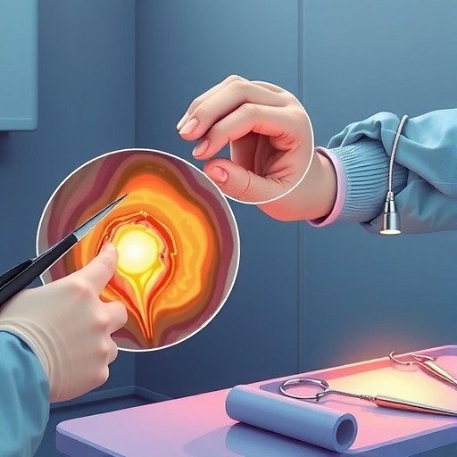 完成膀胱内冲洗后,应通过导尿管反向冲洗膀胱;砂样结石和血块会被冲到切口表面(图5)